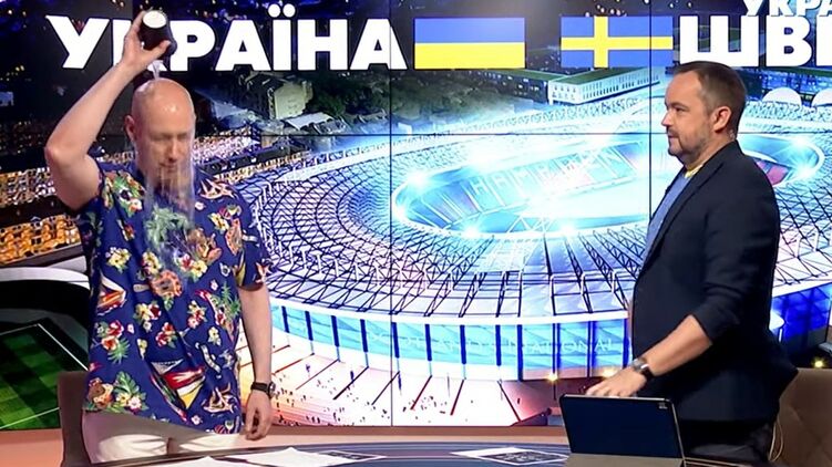 Журналист Дмитрий Гордон после победы Украины в матче со Швецией в 1/8 финала Евро-2020 облил себя водой в прямом эфире.