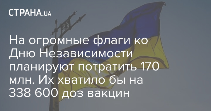 В Украине планируют потратить 170,7 миллионов гривен на покупку гигантских флагов для регионов ко Дню Независимости. На эти деньги можно было бы купить 338,6 тысяч доз вакцины от коронавируса.