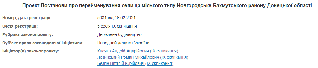 Проект постановления в Раду подали еще в феврале "слуги" Безгин и Клочко, а также присоединившийся к ним нардеп от "Голоса" Лозинский.