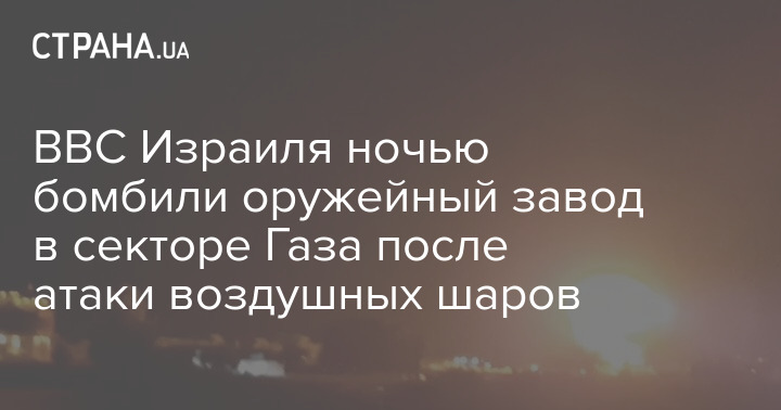 Израильские военные самолеты бомбили оружейный завод ХАМАСа в секторе Газа рано утром в пятницу в ответ на волну поджогов с помощью воздушных шаров, совершенных накануне на юге Израиля.