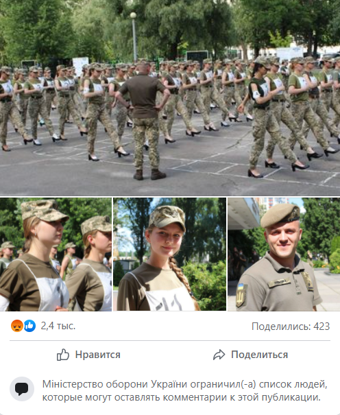 Маршировка на каблуках явно не имеет отношения к военному делу. Поэтому в комментариях к публикации Минобороны некоторые украинцы начали осуждающе комментировать формат марша.