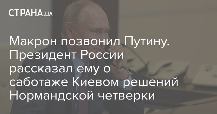 Макрон позвонил Путину. Президент России рассказал ему о саботаже Киевом решений Нормандской четверки
