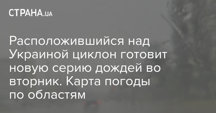 Расположившийся над Украиной циклон готовит новую серию дождей во вторник. Карта погоды по областям