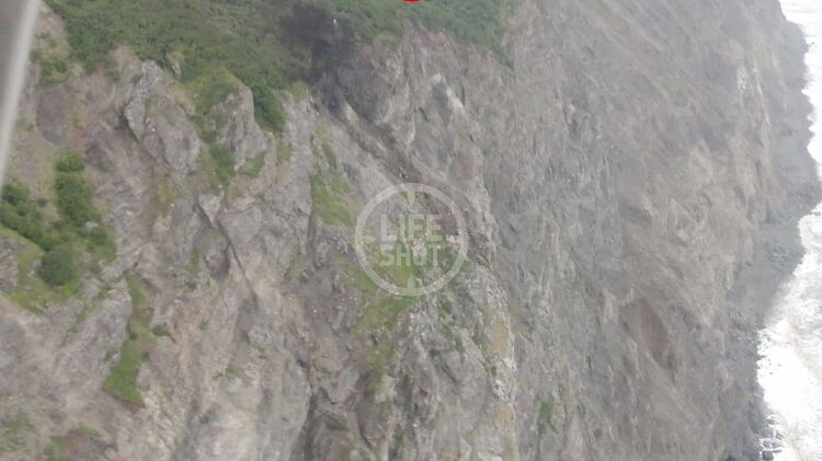 Судя по снимку, пассажирский авиалайнер мог рухнуть в море со скалы. На фото видны черные следы горения самолета.