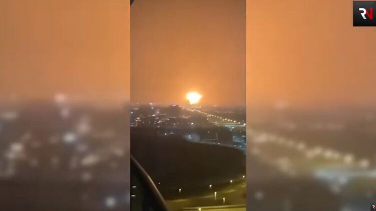 Очевидцы происшествия публикуют в соцсетях видеоролики, на которых, по их словам, запечатлен момент взрыва: видно, как на фоне ночного неба образовывается огромный огненный шар.