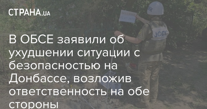 В ОБСЕ заявили об ухудшении ситуации с безопасностью на Донбассе, возложив ответственность на обе стороны