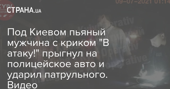 В Фастове пьяный мужчина прыгнул на служебный патрульный автомобиль. Фото: Киев Оперативный