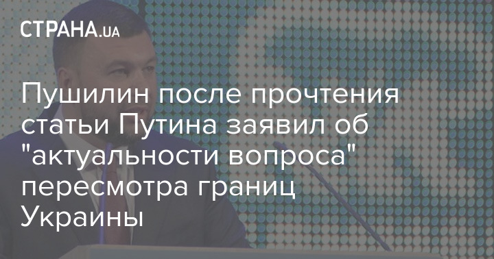 Так называемый "глава ДНР" Денис Пушилин, обсуждая статью Владимира Путина об Украине, заявил, что считает актуальным вопрос о "пересмотре границ Украины".
