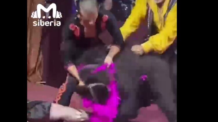 В РФ в Кемеровской области в ходе циркового выступления медведь внезапно напал на дрессировщиков.