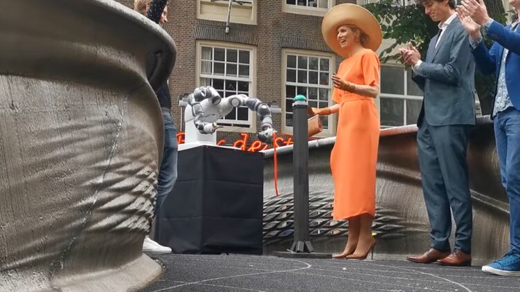 Церемонию открытия посетила королева Максима. И, как видно на кадрах с мероприятия, красную ленту перед мостом торжественно перерезал ножницами робот.