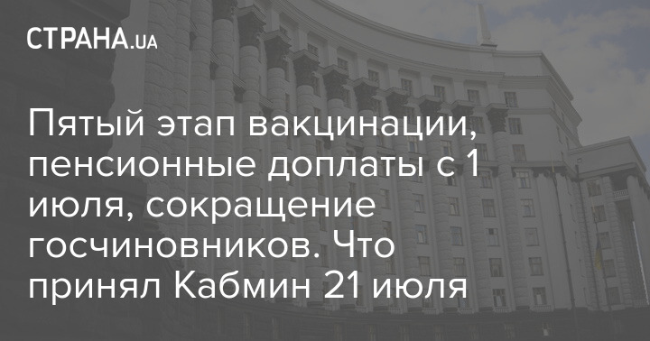 Кабмин 21 июля начался с темы вакцинации. Премьер-министр Денис Шмыгаль анонсировал старт пятого этапа вакцинации с сегодняшнего дня. Теперь все категории населения, вне зависимости от возраста и профессии, могут получить вакцину. Для этого нужно обратиться в центр вакцинации или прививочный пункт. Для ускорения процедуры лучше иметь уже подписанную декларацию с семейным врачем, - сказал Шмыгаль. То есть, в теории можно прийти на прививку и без декларации и ее подпишут на месте, что ранее не разрешалось.
