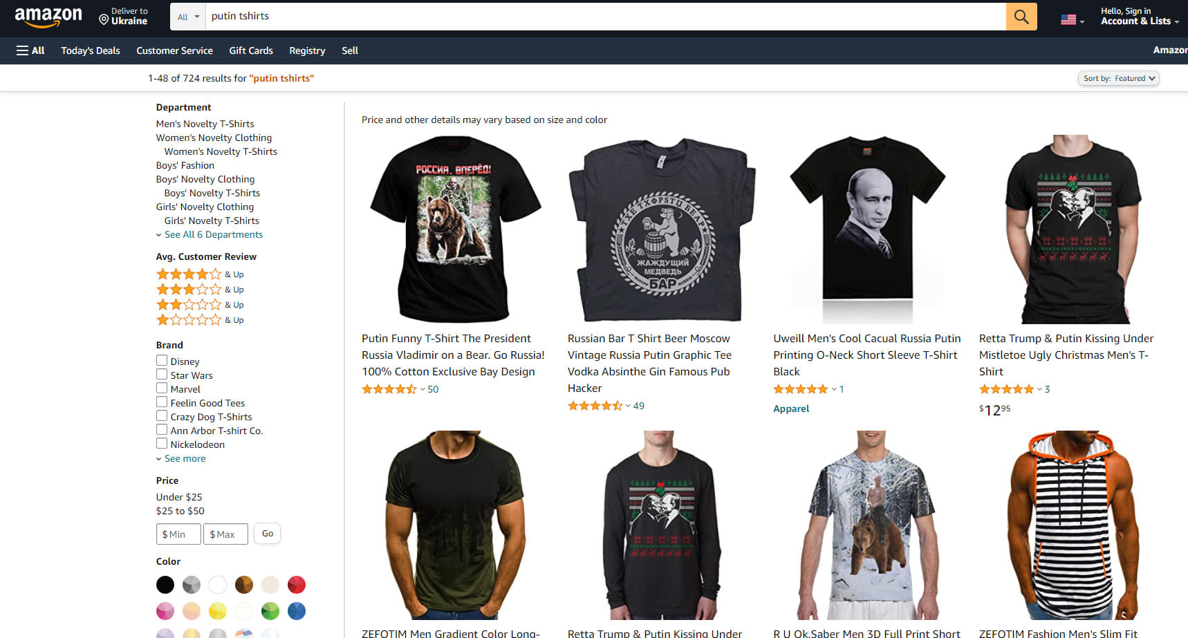 Но вернемся к Wildberries. Интересно, что, после того как в январе магазин упрекнули в распространении "антиукраинской" литературы, раздел с книгами пропал из каталога украинской версии сайта. Как и в сентябре мгновенно после критики "потерялись" футболки с Путиным.