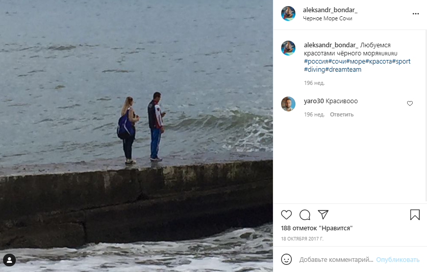 В октябре 2017 года пара посетила Сочи. Снимок подписан так: "Любуемся красотами Черного моря" и  хэштегом Россия.