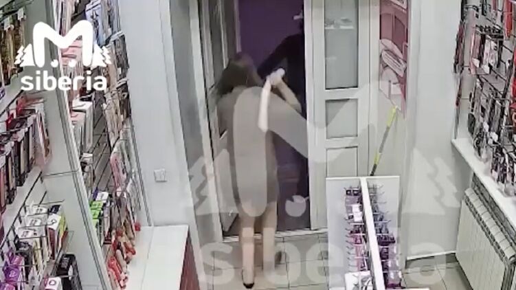 На кадрах запечатлено, как мужчина вошел в магазин и сразу же потянулся к кассе. В правой руке он держал нож. Однако это девушку не испугало. Она взяла фаллоимитатор, который лежал на столе и начала бить ним вора. Последний, вероятно, не ожидал такого исхода событий, и начал убегать от девушки.