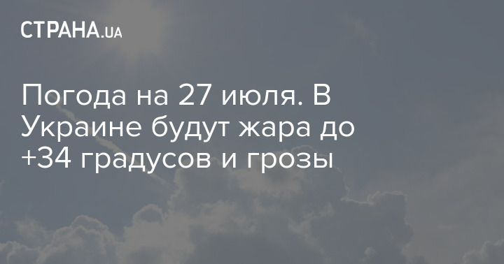 Во вторник, 27 июля, в большинстве областей Украины ожидается сухая погода и жара до +34. Однако в западных регионах, где объявили штормовое предупреждение, синоптики прогнозируют грозовые дожди.