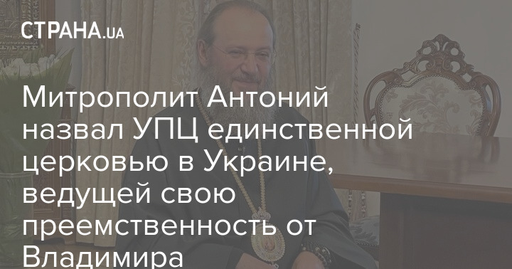 Управляющий делами Украинской Православной Церкви (УПЦ) митрополит Антоний (Паканич) заявил, что в Украине существует только одна Православная Церковь, которая ведет свою преемственность от святого равноапостольного князя Владимира. По его словам, это - УПЦ.