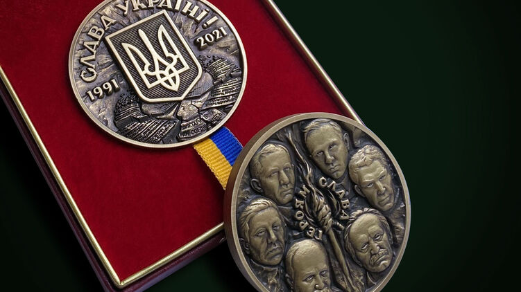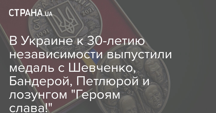 В Украине выпустили памятную медаль, посвященную 30-летию Независимости, на которой изображены Тарас Шевченко, Степан Бандера, Василий Стус, Симон Петлюра, Евгений Коновалец и Вячеслав Черновол. Также на монете отчеканен лозунг: "Слава Украине! Героям слава!".