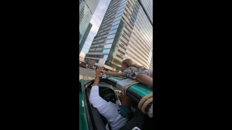 Видео появилось в соцсети блогера вечером 1 августа. На записи молодая женщина (герлфренд Косенко блогер Илона Дрожь) лежит на крыше зеленого Bentley, привязанная скотчем и веревкой. Причем ее правая рука прикована наручниками к левой руке водителя. Автомобиль движется по улицам Москва-Сити.