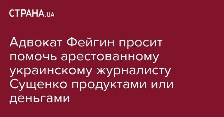 Адвокат Фейгин просит помочь арестованному украинскому журналисту Сущенко продуктами или деньгами