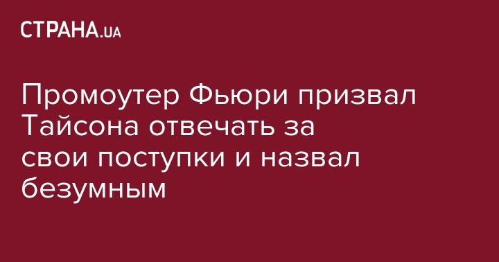 Промоутер Фьюри призвал Тайсона отвечать за свои поступки и назвал безумным