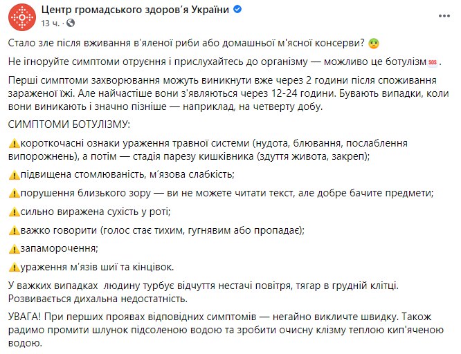 В МОЗ рассказали украинцам о первых симптомах ботулизма и что делать при их проявлении