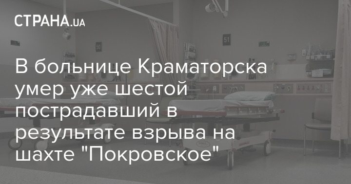 В ожоговом отделении больницы Краматорска Донецкой области умер еще один горняк, который получил серьезные травмы в результате взрыва на шахте "Покровское". Это уже шестая смерть в результате трагедии.