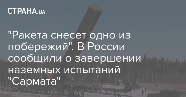 "Ракета снесет одно из побережий". В России сообщили о завершении наземных испытаний "Сармата"