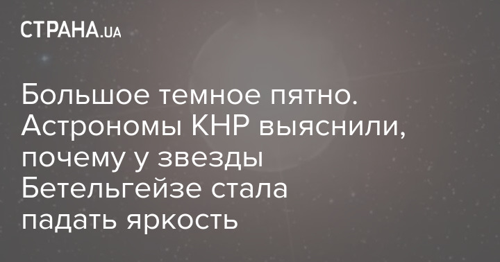 Большое темное пятно. Астрономы КНР выяснили, почему у звезды Бетельгейзе стала падать яркость