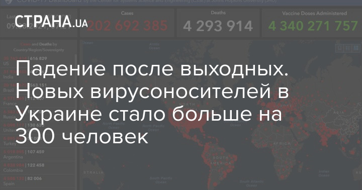 А тем временем университет Джона Хопкинса, который мониторит ситуацию на Земле в режиме нон-стоп привел свежие данные на утро 9 августа 2021 года. Итак, с момента начала пандемии на Земле коронавирусом заразились уже 202 692 385 человек, мартиролог на этот час таков - 4 293 914 человек.