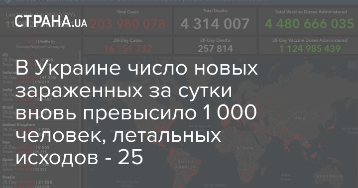 А тем временем университет Джона Хопкинса, который мониторит ситуацию с пандемией в режиме он-лайн привел свежие данные на утро 11 августа 2021 года. Итак, с момента начала пандемии на Земле коронавирусом заразились уже 203 980 078 человек, умерли - 4 314 007 человек.