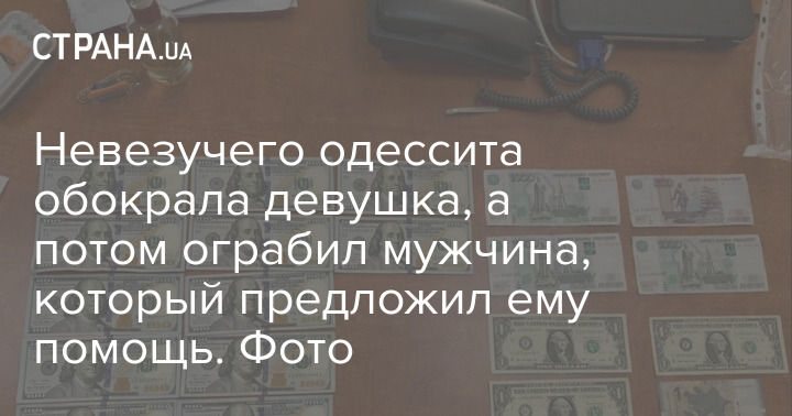 В Одессе в течении одного дня мужчину ограбили дважды. Сначала девушка украла у него золото, деньги и телефон. После чего незнакомый мужчина предложил помочь ему добраться домой и ограбил еще раз.