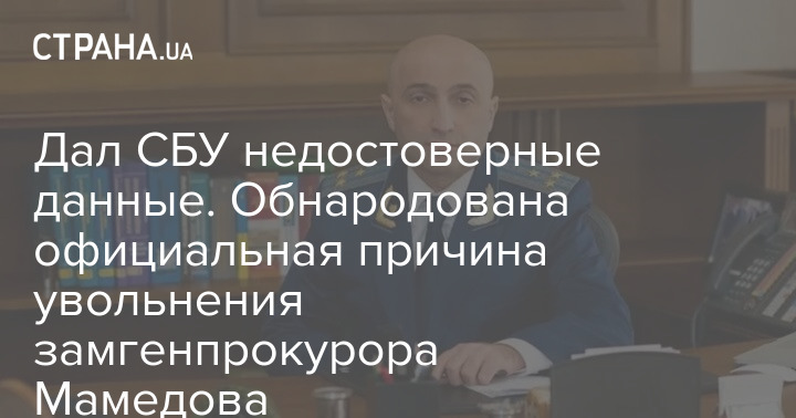 Заместитель генерального прокурора Гюндуз Мамедов предоставлял СБУ недостоверные данные. Поэтому кадровая комиссия по рассмотрению дисциплинарных жалоб Офиса генерального прокурора нашла основание для его увольнения. Ранее сообщалось, что Венедиктова уволила Мамедова с формулировкой о ненадлежащем исполнении обязанностей