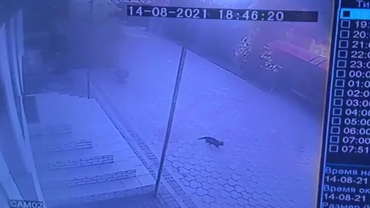 Видео записано без звука и на нем указано время и дата - 14 августа (хотя трагедия произошло 15 числа, вероятно на камерах были сбиты настройки даты и времени) 17:28.