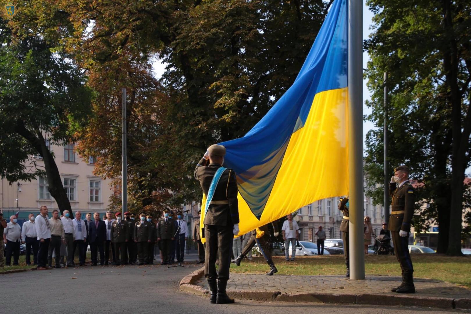 9:00 - торжественное открытие флагштока и церемония поднятия самого большого государственного флага Украины с участием военнослужащих ВСУ и стран-партнеров с маршем военного оркестра на ул. Героев Майдана, 32 (Академия Сухопутных войск).