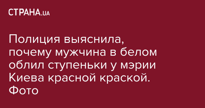 Во вторник, 24 августа, после окончания официальных мероприятий в честь Дня независимости Украины, мужчина облил красной краской не только ступени возле мэрии Киева и постамент с флагом, но и самого себя. Правоохранители открыли уголовное производство по статье о хулиганстве.