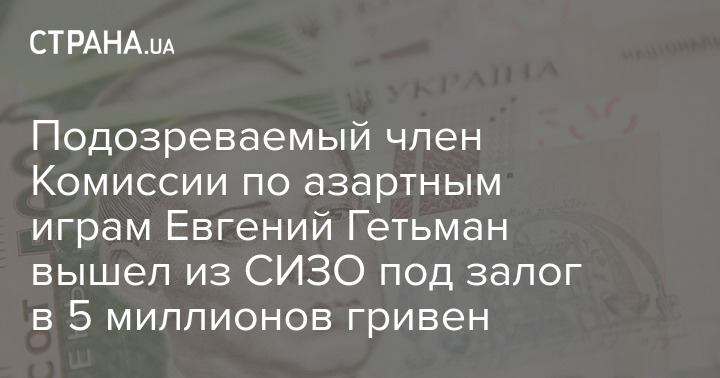 Член Национальной Комиссии по регулированию азартных игр Евгений Гетьман, которого недавно поймали на взятке в $90 000, вышел из следственного изолятора. За него внесли больше 5 миллионов грн залога.