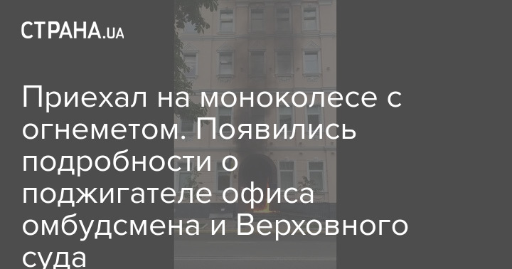 Поджоги дверей офиса омбудсмена на Институтской, а также Верховного суда на улице Орлика 26 августа устроил житель Новой Каховки на моноколесе.
