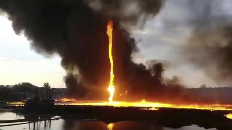 Огненный вихрь в высоту достигал нескольких десятков метров. Его пытались потушить с помощью бульдозера и вертолета, сбрасывающего большой объем воды на огонь.