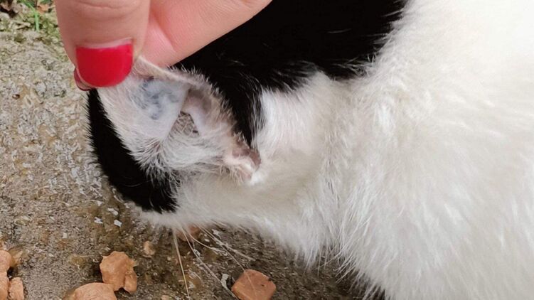В Херсоне нашли бездомную кошку, на ушах которой были набиты татуировки с нацистской символикой.