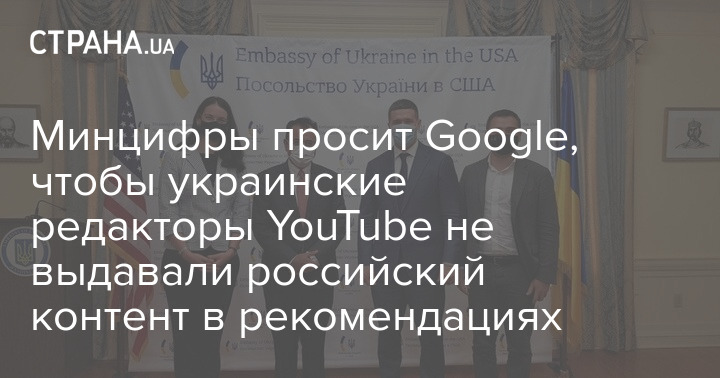 Минцифры просит Google, чтобы украинские редакторы YouTube не выдавали российский контент в рекомендациях