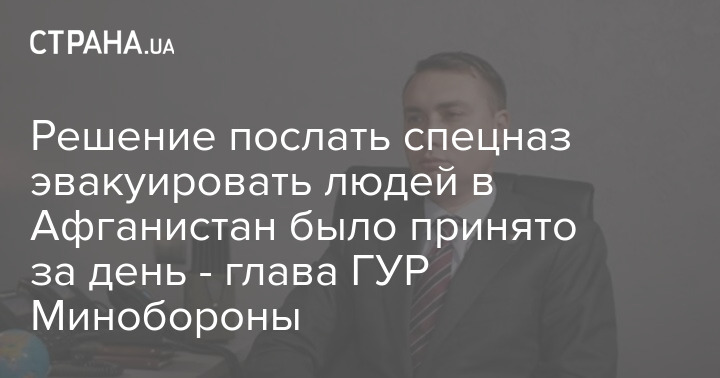 Руководитель Главного управление разведки Министерства обороны Кирилл Буданов сообщил, что решение провести спецоперацию по эвакуации из Кабула иностранцев власти Украины приняли за один день. В результате украинский спецназ спас зарубежных журналистов и афганских переводчиков, сотрудничавших с западными странами.