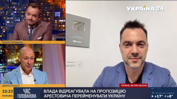 Дмитрий Гордон пообщался с Арестовичем о переименовании страны. Скриншот