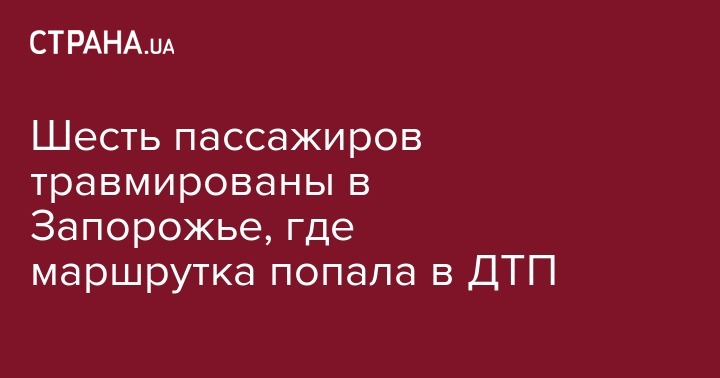 8 октября, около 23:00 в Александровском районе Запорожья вследствие аварии маршрутного такси,  были травмированы 6 человек, из них 4 с различной степенью тяжести госпитализированы.