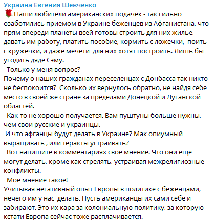 "Шиш переселенцам Донбасса, милости просим афганцев"