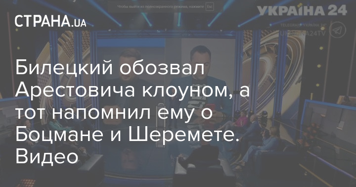 Вчера, 15 сентября, глава праворадикальной партии "Национальный корпус" Андрей Билецкий в прямом эфире телеканала "Украина 24" публично обозвал Алексея Арестовича клоуном.