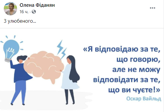 А ближе к вечеру среды опубликовала новый пост - по следам старого. В нем она процитировала писателя Оскара Уайльда: "Я отвечаю за то, что говорю, но не могу отвечать за то, что вы слышите!"