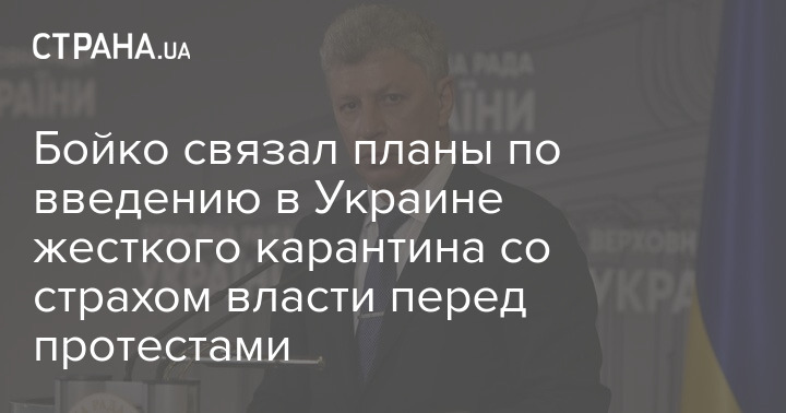 Сопредседатель "ОПЗЖ" Юрий Бойко считает, что желание ввести в Украине жесткий карантин связано с попыткой власти избежать акций протеста из-за высоких тарифов, проблем в медицинской области и сокращении соцзащиты.