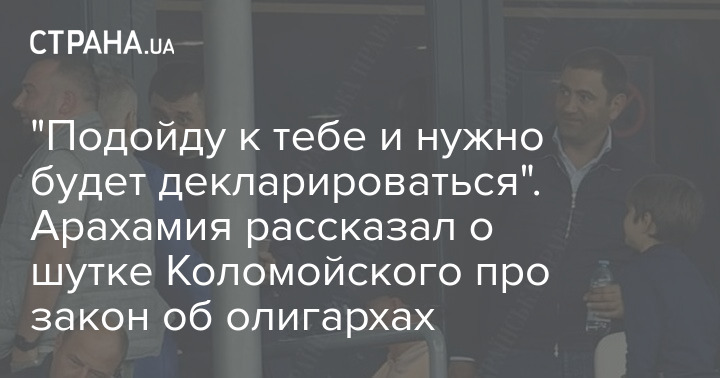 "Он (Коломойский - Ред.) сказал: "Сейчас я к тебе подойду - и тебе нужно будет декларироваться", а я ему говорю: "Не спешите, ещё пару недель есть - можно не декларироваться", - сказал Арахамия, пояснив, что таким образом в разговоре с миллиардером они обменялись шутками про закон об олигархах.