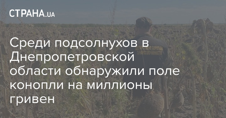 В Днепропетровской области правоохранители обнаружили насаждения конопли стоимостью около 28 млн гривен. Конопля росла в поле, которое было засеяно подсолнухом.