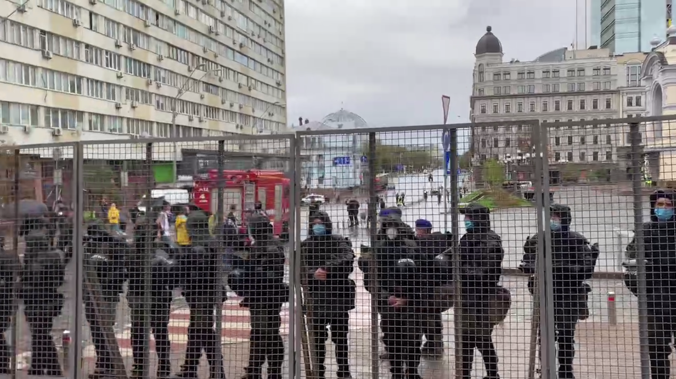 09:38 Вот за таким забором собираются активисты "Марша равенства". Вдоль решетки полиция.
